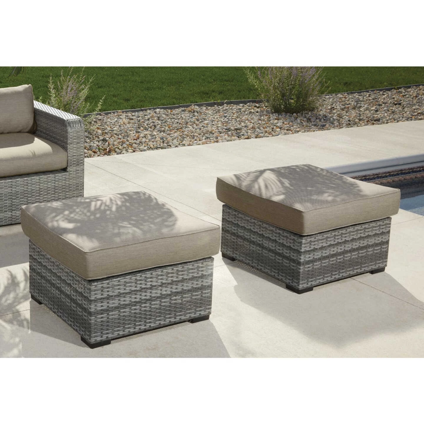 - Olefin cushions, fabric is resistant to stains and mildew